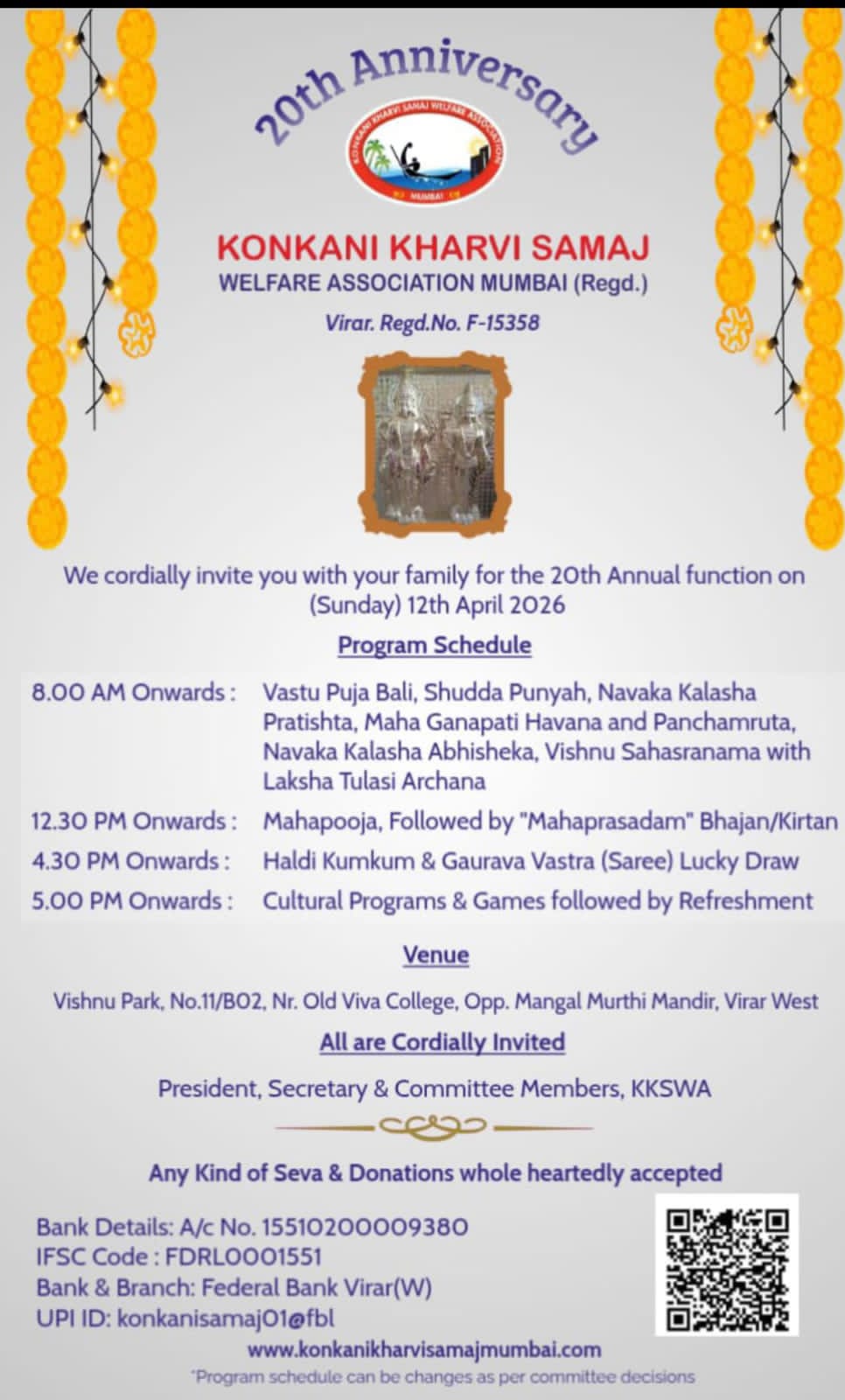 It was about 50-60 years back our kharvi people residing in the coastal region of Karnataka were in search of employment. Initially their motto was to get a job. After some years more & more people started coming to mumbai for employment as the strength of our kharvi people increased, they realized the need to start a community welfare association & ultimately it was such a thinking caused the creation of “Shri Vishnu Bhajana Mandali” in Jogeshwari East in the year 1971 following members were greatly helped in the creation of our “Shri Vishnu Bhajana Mandali”.